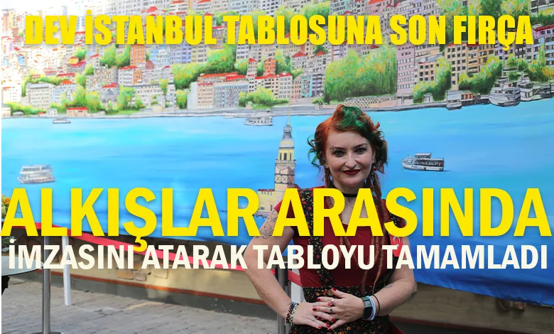 Ressam Alev Özas alkışlar arasında imzasını atarak tabloyu tamamladı!