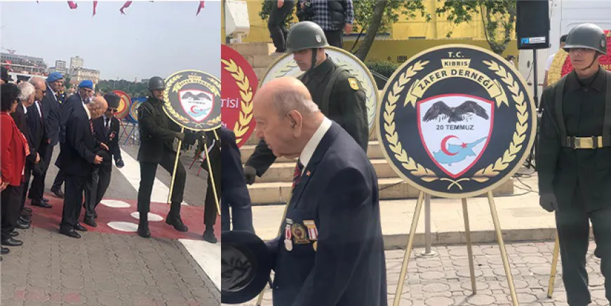 Bu çerçevede 20 Temmuz Kıbrıs Zafer Derneği’de Kadıköy ilçesinde yapılan kutlamada çelengini Atatürk Büstüne sundu