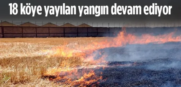 Mardin'in Kızıltepe ilçesinde 18 köye yayılan ve ekili alanların zarar gördüğü yangınlar, kontrol altına alınmaya çalışılıyor.