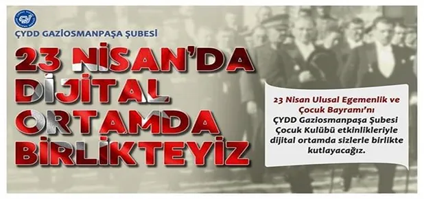 ÇYDD Gaziosmanpaşa Şubesi, Covid - 19 pandemisi nedeniyle, 100. Yıldönümünü kutlayacağımız Ulusal Egemenlik ve Çocuk Bayramını, Türkiye ' de ilk kez dijital olarak kutlayacak.