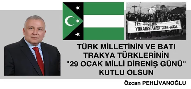 Buradan Batı Trakya Müslüman Türk Azınlığına sesleniyorum: “29 Ocak Milli Direniş Günü”nüz kutlu olsun. Unutmuyoruz ve unutturmayacağız!