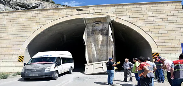 İlginç olay Gümüşhane'de meydana geldi. Özel bir firmaya ait 34 TL 7175 plakalı Durmuş Yerlikaya (47) yönetimindeki kasalı kamyon, Hacıemin 1 tüneline 200 metre mesafede yükünü yeni yapılan istinat duvarının arkasına boşalttıktan sonra tekrar Gümüşhane istikametine döndü.