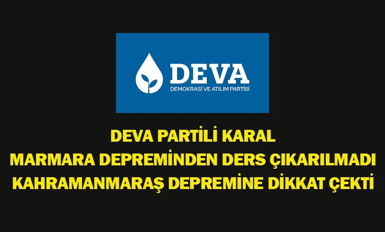 Deva Partili Karal: “Marmara Depremi’nden gereken ders alınmış olsaydı Kahramanmaraş depremleri bu kadar canımızı yakmayacaktı”