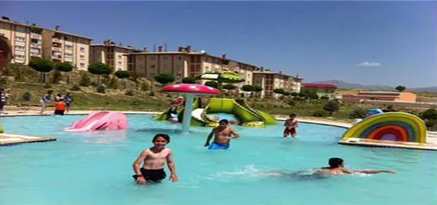 Şiranlı çocuklar sıcak havada aquaparkta serinliyor