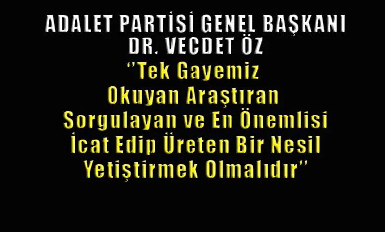 Adalet Partisi Genel Başkanı Dr. Vecdet Öz yeni eğitim öğretim yılı öncesi bir mesaj yayınladı. Dr. Öz sosyal medya hesabından yayınladığı mesajında;
