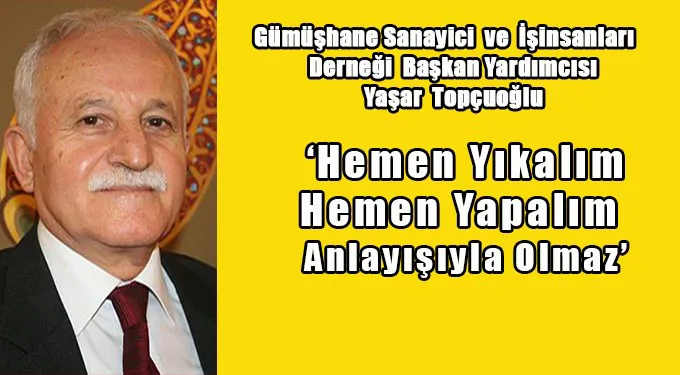 GÜMÜŞHANE / GÜNDOĞUMU Gümüşhane sanayi ve işinsanları derneği başkan yardımcısı Yaşar Topçuoğlu, yaptıkları bir araştırmaya göre ülke genelinde 50 bin binanın yenilenmesi, 6 bin binanın ise yıkılması gerektiğini söyledi.