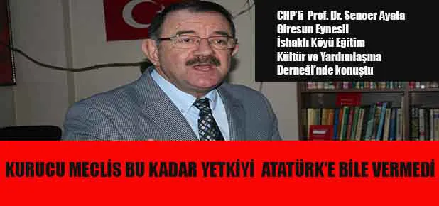 Ayata, kurtuluş mücadelesi veren yüce meclisin Atatürk’e bile bu hakları tanımadığına dikkat çekerken, ‘Bu değişiklikten iktidar vekillerinin bile haberi yok, çoğu maddeler komisyonda konuşulmadı bile; bir de şu var! 15 yıldır başarılı olduğunu söyleyen hükümete iktidara bu yetkileri biz neden verelim? zaten başarılı değil mi ya da başarısız bir 15 yılın mimarı olan iktidar ortada iken o zaman bu kadar yetki verilmesi doğrumudur’? dedi.
