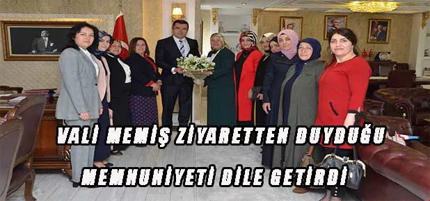 Ak Parti Kadın Kolları Başkanı Münire Şeyhoğlu ve yönetim kurulu üyelerini kabul eden Vali Memiş kendileri ile bir süre sohbet ederek ziyaretten duyduğu memnuniyeti ifade etti.