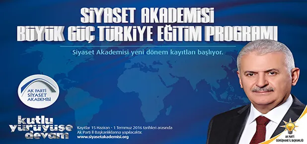 Siyaset Akademisi 16 dönemdir kesintisiz olarak ülkemizde uygulanan tek eğitim faaliyetidir. Kurumsal bir niteliğe bürünen Siyaset Akademisi, katılımcıları ve verilen eğitim düzeyi ile lisansüstü bir düzeye ulaşmıştır. Temmuz 2016’da, 17. dönemi 81 ilde başlayacak olan Siyaset Akademimizin yeni hedefi, Büyük Güç Türkiye için gerekli olan siyasi ve idari yapıların tartışılacağı, bilgilendirileceği, özellikle Dünya’dan örnekler ile somut uygulamalara dayalı bir Akademi programı müfredatından oluşmaktadır. Dersler teorik ve uygulamalı olarak dört temel başlık altında, yaklaşık 60 alt başlık olarak toplanmıştır. 10 hafta boyunca haftada en az 12 saat/3 gün ders takip edecek olan katılımcılarımız, Türk Siyasetine Giriş, Siyasal Sistemler ve İdeolojiler, Siyasal Strateji ve İletişim Becerileri başlıklarına ek olarak bu yıl Deneyim Paylaşımları bölümünde demokratik bir platformda daha fazla tecrübe ve siyasi hikayeye birinci ağızdan da şahit olma şansını elde edeceklerdir.”