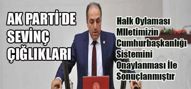 “Halk oylaması, milletimizin Cumhurbaşkanlığı Hükümet Sistemini onaylamasıyla sonuçlanmıştır. Milletimiz daha güçlü bir demokrasiye ‘evet’ diyerek vesayete son vermiştir. Bu nedenle 16 Nisan bir milattır ve demokrasi tarihimize altın harflerle yazılacaktır. Yeni sistemle Türkiye’mizin ne gibi kazanımlar elde edeceğini inşallah herkes görecektir. Siyasi krizlerle bocalamış ülkemiz için yeni bir sayfa açılmıştır. Vesayet düzeninin neden olduğu ‘kayıp yıllar’ söz konusu olmayacaktır. Türkiyemizin müreffeh yarınları için önemli bir kazanç olacak Cumhurbaşkanlığı Hükümet Sistemi reformu milletimize hayırlı olsun.