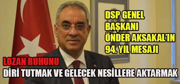 DSP Genel Başkanı Önder Aksakal, Lozan Barış Antlaşması’nın 94. Yıldönümü nedeniyle bir mesaj yayınladı. Aksakal’ın mesajı şöyle;