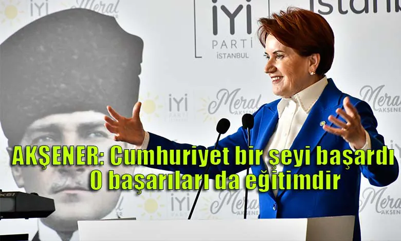 "Cumhuriyet bir şeyi başardı. O başarılan da eğitimdir." diyen Akşener, "Önce öğretmeni yetiştirdi. En zor şartlar altında bile öğretmeni yetiştirmekten vazgeçmedi. Sonra yatılı öğretmen okullarında, kız veya erkek, bu çocukları Türkiye'nin her tarafından gelmiş diğer çocuklarla bir araya koydu. Kardeş etti, birbirleriyle olan iletişimlerinin ömür boyu olmasını sağladı. 'Biz eğitim ordusuyuz. Bu ülkeyi kalkındıracağız' denilerek bizleri mezun etti. Kardeş etti, dost etti, bu ülke için nefer etti." ifadelerini kullandı.