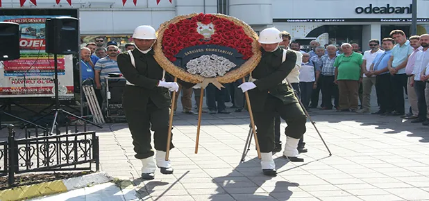 Ellerindeki çelenkle uygun adımlarla anıta yürüyen askerler meydanı dolduran halk tarafından alkışın en büyüğünü aldı.
