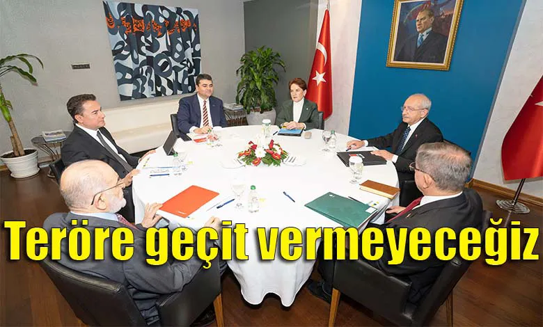 Altılı masaya bağlı siyasi partiler yeni bir gündemle bir araya geldiler. Toplantı öncesi yapılan ortak açıklamada; ‘Teröre geçit vermeyeceğiz’ denildi.
