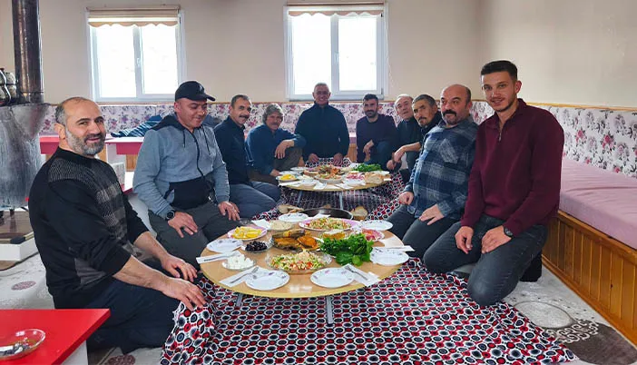 Ziyaret sırasında dikkat çeken en önemli detay ise Anadolu kültürünün asırlardır yaşatılan simgelerinden biri olan yer sofrası oldu. Köylüler tarafından kurulan sofrada turşudan bala, tereyağından patatese kadar birçok yöresel ürün yer aldı.