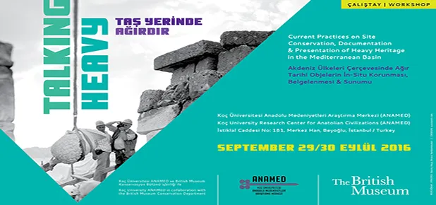 Koç Üniversitesi Anadolu Medeniyetleri Araştırma Merkezi (ANAMED), British Museum Konservasyon Bölümü ve International Training Programme işbirliğiyle, “Taş Yerinde Ağırdır: Akdeniz Ülkeleri Çerçevesinde Ağır Tarihi Objelerin İn-Situ Korunması, Belgelenmesi ve Sunumu” adlı çalıştayı düzenliyor. 29-30 Eylül 2016 tarihlerinde Beyoğlu’ndaki ANAMED binasında gerçekleştirilecek çalıştayda, bir araya gelecek olan farklı ülkelerden katılımcılar taşınır ve taşınmaz ağır tarihi mirasın bulunduğu çok sayıda arkeolojik ve tarihi yerleşim yerindeki koruma, konservasyon ve restorasyon çalışmalarına yönelik güncel uygulamaları tartışacak. İki gün boyunca 09.00- 17.00 saatleri arasında ANAMED’de düzenlenecek olan çalıştay, ücretsiz olarak takip edilebilecek.