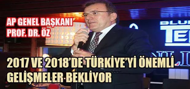 Konuşmasına gündemde öne çıkan konu başlıklarıyla devam eden Genel Başkan Prof. Öz, ‘Türkiye bir parçalanma dönemi yaşıyor. Böylece aynı zamanda bir birleşme dönemine de gidiliyor çünkü uluslararası oyunlar Türkiye’yi rahat bırakmıyor. 2017 - 2018 senesi çok kritik seneler birçok önemi olaylar olacaktır. 2018 senesinde vatan mevzubahis siyaset teferruat haline gelecektir. Oraya doğru gidiyoruz’ diye konuştu.