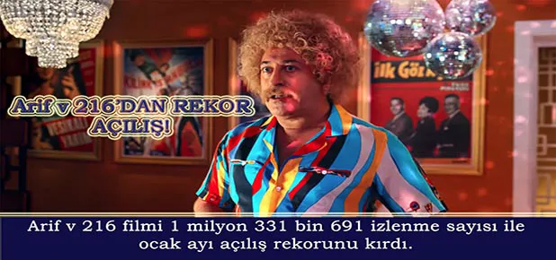 5 Ocak’ta vizyona giren Cem Yılmaz’ın yeni filmi Arif v 216, 1 milyon 331 bin 691 izleyici sayısına ulaşarak Ocak ayı açılış rekoru kırdı. Arif v 216, yakaladığı bu başarıyla tüm zamanların en iyi dördüncü vizyon açılışını gerçekleştirmiş oldu.