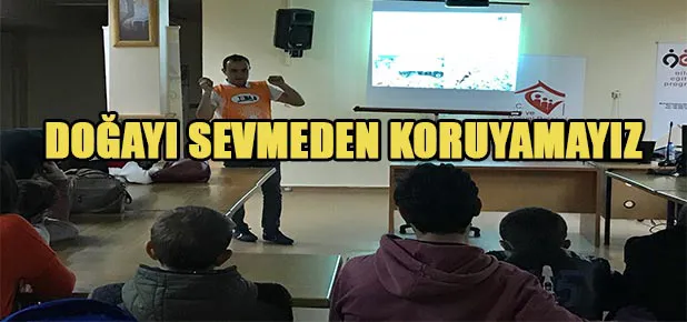 Einstein’ın arılar olmazsa insanlığın dört yıl ömrü kalır sözünü hatırlatan Oral, “Doğayı tanımadan sevemeyiz, sevmeden koruyamayız. Bu yüzden okullarda doğa eğitimleri veriliyor. Kendi ellerimizle bozduğumuz ve bu bozulmanın geri dönüşü olarak çok çevre felaketi yaşadığımız doğamızı geri kazanmak ve düzeltmek yine bizler düzeltebiliriz” ifadelerini kullandı. Sunum boyunca etkinliğe katılan öğrencilere doğa bilincini aşılayan renkli animasyon filmleri izlettirildi