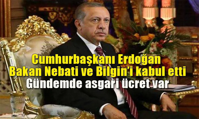 AKP’li Cumhurbaşkanı Recep Tayyip Erdoğan, asgari ücret görüşmeleri öncesi Hazine ve Maliye Bakanı Nureddin Nebati ile Çalışma Bakanı Vedat Bilgin’i bugün saat 18.15’te kabul etti.