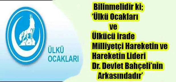 Bilinmelidir ki; Ülkü Ocakları ve Ülkücü irade Milliyetçi Hareketin ve Hareketin Lideri Dr. Devlet Bahçeli'nin arkasındadır.