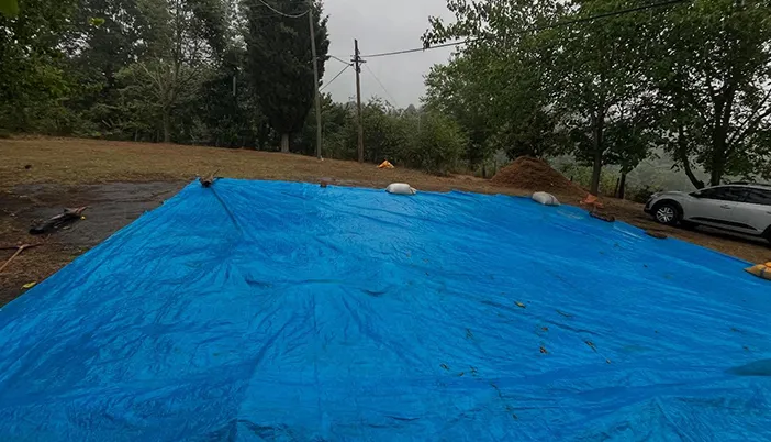 Harmanda fındığı bulunan çiftçiler, yağmurun başlamasıyla birlikte brandalarla ürünlerinin üzerini kapatarak zarar görmesini engellemeye çalıştı. Uzmanlar, yağışın fındığın tam olgunlaşıp yere düşmesi açısından faydalı olduğunu vurguluyor.
