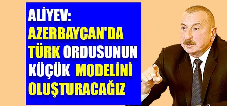 İki ülkenin askeri güçbirliğinden ve Türk ordusunun kendine özgü kabiliyetinden övgüyle söz eden Aliyev, "Azerbaycan'da Türk ordusunun küçük modelini oluşturacağız. Türk ordusu modeli bizim için en makbul modeldir" dedi.