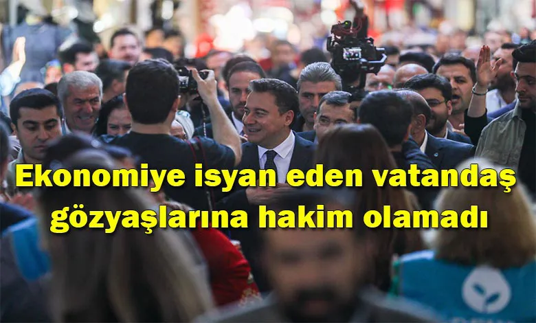 Burada girdiği bir dükkanda Babacan’la konuşan bir vatandaş ekonomiye isyan ederken göz yaşlarına hakim olamadı.