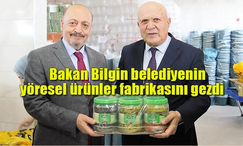 Fabrikada yapılan alışmaları Bakan Bilgin’e anlatan Belediye Başkanı Hükmü Pekmezci üretim aşamalarının el değmeden hijyenik bir biçimde gerçekleştirildiğini ifade ederek ürün çeşitleri hakkında bilgi verdi.
