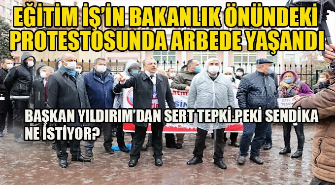 Genel Başkan Orhan Yıldırım yaşanan arbede sonrası, “Burası Milli Eğitim Bakanlığı ve biz de bu Bakanlığın emekçileriyiz! Yasal hakkımızı gasp edemezsiniz” diyerek tepki gösterirken, pankartın asılmasına izin verilmemiştir.