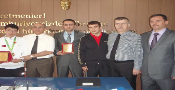 Brezilya'da düzenlenen Dünya Bilek Güreşi Şampiyonası'nda üçüncü olan Endüstri Meslek Lisesi öğrencisi Tarık Doğan'ı İl Milli Eğitim Müdürü Hızır Aktaş makamında kabul etti
