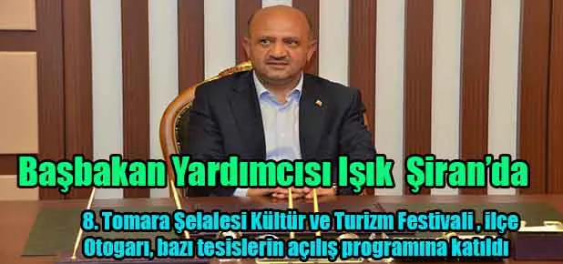 8. Tomara Şelalesi Kültür ve Turizm Festivali’nin ve Şiran Belediye Hizmet Binası’nın açılışı ile yeni otogar, oto galeri dükkânları ve konaklama evinin temel atma töreni, Başbakan Yardımcısı Fikri Işık’ın katılımıyla gerçekleştirildi.