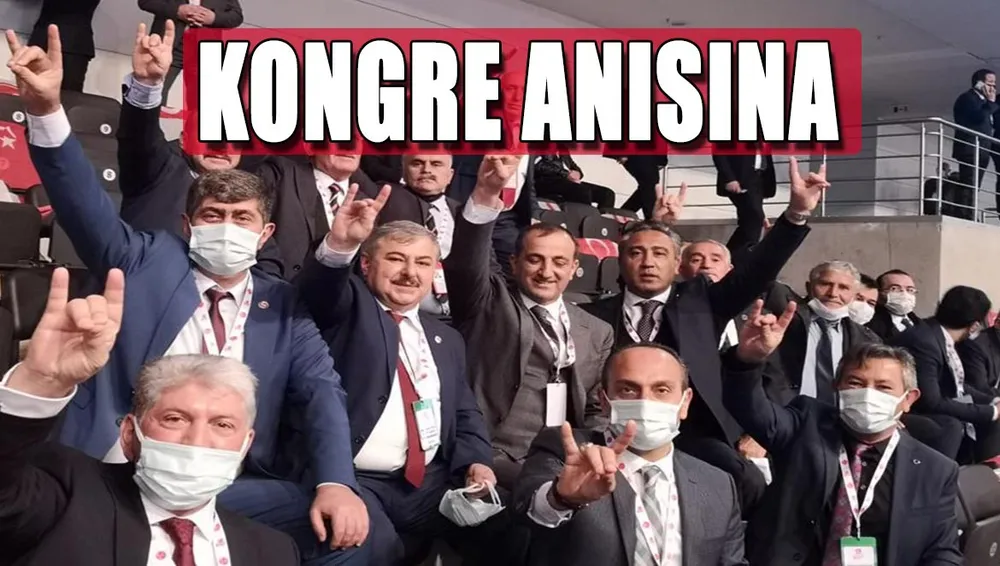 Kongrenin bir ara heyecanına kapılan MHP'li belediye başkanları Çetin Rıza Tanış, Yakup Turgut, Evren Evrim Özdemir, Turgay Kesler, Sezai Doğan, Enver Şen, MKYK Üyeliğine yeniden seçilen Musa Küçük, Mutlu Özel, İl Başkanı Aydın kurt işareti vererek selam gönderdiler. O anlar ise objektiflere böyle yansıdı.