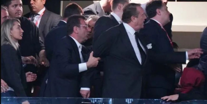 O sırada protokol tribününde kısa süreli tartışma yaşanırken, İstanbul Büyükşehir Belediye Başkanı Ekrem İmamoğlu’da tartışmanın büyümesine engel oldu.