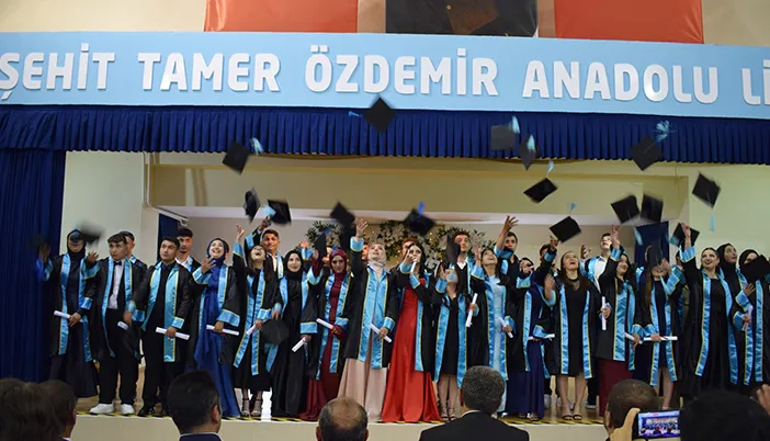 Törende mezun öğrencilere diplomalarını takdim eden Başkan Özdemir, yaptığı konuşmada “Mezun olarak üniversite hayatına başlayacak olan genç kardeşlerimize çıkmış oldukları bu yolculukta üstün başarılar diliyorum” dedi.