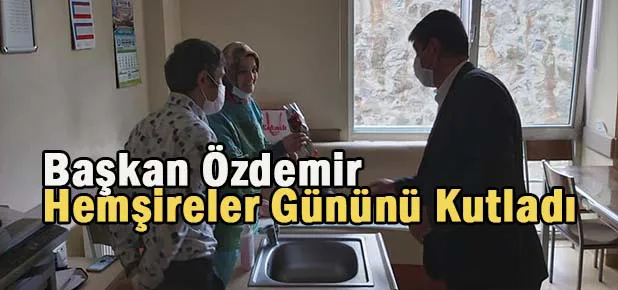 Başkan Özdemir, hemşirelere çiçek takdim ederken, görevlerinde başarı diledi.