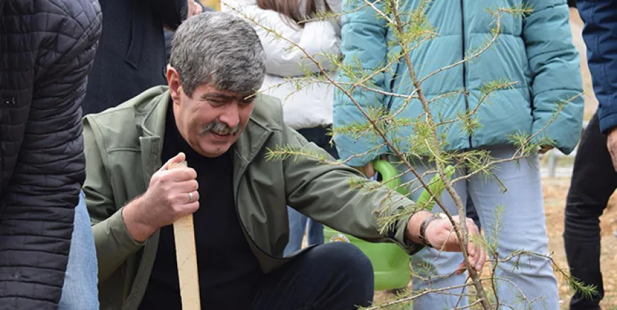 Aynı zamanda Ziraat Mühendisi olan Özdemir, bir fidanı elleriyle özenle toprağa dikti.