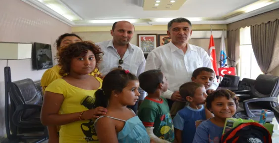 Altınoluk Belediyesi tarafından Altınoluk’ta yaşayan Roman vatandaşların okula giden çocukları için aldığı okul önlüğü, kırtasiye malzemeleri