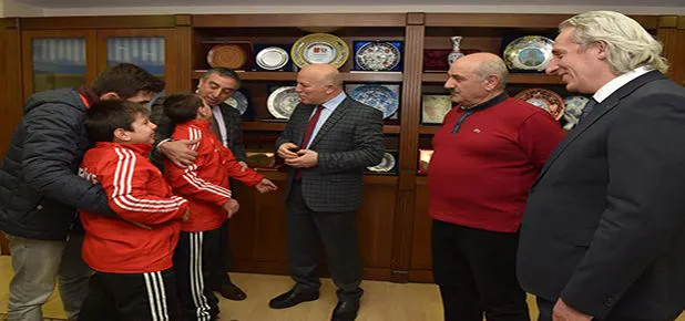 Erzurum Büyükşehir Belediye Başkanı Mehmet Sekmen, kayakta Türkiye Şampiyonu olan milli kayakçılar Aliye Zeynep ve Muhsin Murat Bingül’ü makamında ağırladı