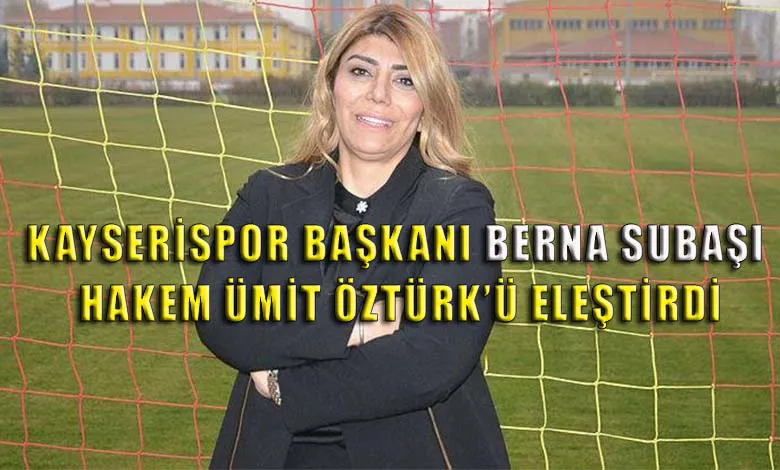 Kayserispor cephesinden orta hakem Ümit Öztürk’e tepki. Ligin 8. Haftasında Kayseri’de oynanan Kayserispor – Trabzonspor karşılaşmasının ardından Kayserispor Başkanı Berna Subaşı ortahakem Ümit Öztürk’e yükledi. Subaşı isim vermeden Trabzonspor’u da eleştirdi.