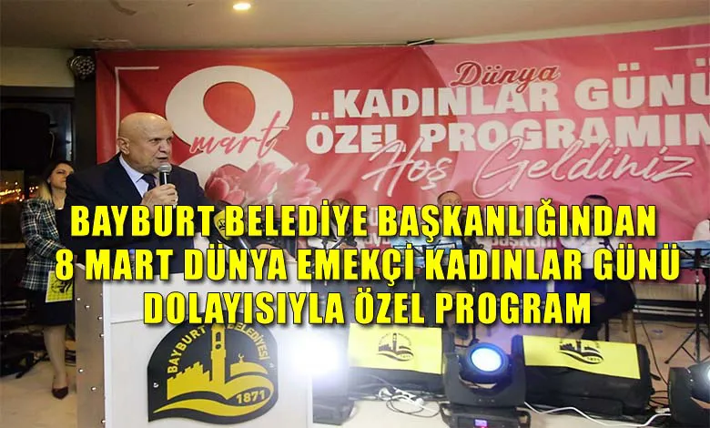 Bayburt Belediyesi Konservatuvarı Türk Halk Müziği Korosu ve Bayburtlu Sanatçı İklima Güngör’ün sahne aldığı programda konuşan Belediye Başkanı Hükmü Pekmezci “Bugün 8 Mart Dünya Kadınlar Günü. Birleşmiş Milletler tarafından kabul edilen bir düzenleme ile tüm dünyada 8 Mart Kadınlar günü olarak kutlanmış. Ülkemizde 1921 yılından itibaren kutlanmaya başlayan ve 1977 yılından itibaren de Birleşmiş Milletler kararıyla uluslararası boyuta gelmiştir. Bizler kadın ve erkeğin bir bütünün iki eşit parçası olduğuna inanan bir anlayışın mensuplarıyız. Hayatın ağır yüklerini taşıyan, elinin emeğini gözünün nuruyla birleştiren, küçük yüreğine koskoca sevgileri sığdıran, güçsüz bedenlerin güçlü kahramanlarıdır kadınlarımız. Yeri geldiğinde anne, yeri geldiğinde içten bir arkadaş ve bazen bir eş olur kadınlarımız. Onlar bizim baş tacımız. Dünya’da kadına henüz yeteri kadar değerin verilmediği bir dönemde ilk defa Türkiye’de 1930’lu yıllardan itibaren kadınlarımıza seçme ve seçilme hakkı getirilmiştir. Kadınlarımıza önce 1930 yılında belediyeler ile muhtarlık ve ihtiyar heyetlerine seçilme hakkı verilmiş, daha sonra milletvekilli seçme ve seçilme hakkı sağlanmıştır.” ifadelerini kullandı.