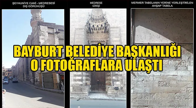 Yukarıda maruz bilgiler ışığında bahse konu Cami/Medrese ile türbenin fotoğrafları ilgili yazınızda belirtilen e posta adresine gönderilmiş olup ayrıca ilişikteki medya ortamında sunulmaktadır.” denilerek mezarın fotoğrafları Bayburt Belediyesi’ne ulaştırıldı.