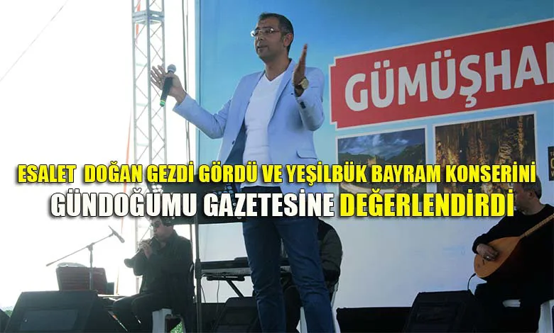 Gümüşhaneli söz yazarı, bestekâr Esalet Doğan. Birbirinden güzel sözlere imza atan Esalet Doğan dördüncüsü düzenlenen Gümüşhane Şiran ilçesi Yeşilbük Belediye Konserinin organizasyonunda yer aldı, gördüklerini tüm izlenimlerini Gündoğumu Gazetesi ile paylaştı.