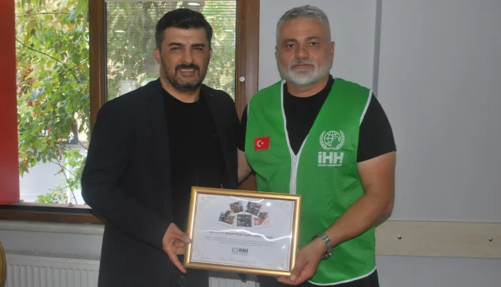 Dernek Başkanı İlhami Uncu tarafından İHH Bahçelievler Sorumlusu Mehmet Akif Kaya’ya teslim edilen nakdi yardım, Gazze’deki ihtiyaç sahiplerine ulaştırılacak. Mehmet Akif Kaya, bu örnek davranışlarından ötürü İlhami Uncu’ya teşekkür belgesi takdim etti.