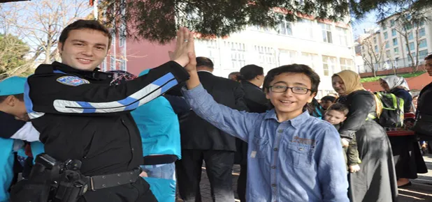 Toplum Destekli Polislik faaliyetleri kapsamında 24 Ocak Cuma günü okulların ilk döneminin kapanması ve karne dağıtımı sebebiyle Toplum Destekli Polislik Şube Müdürlüğü ve Beyoğlu Toplum Destekli Polislik Büro Amirliğinde görevli polis memurları Dr.Tevfik Sağlam Ortaokulu,Hüviyet Bekir İlkokulu ve Hüviyet Bekir Anaokulu’nu ziyaret etti. Karne dağıtımında öğrencilerle birlikte olan polis memurları öğrencilerin karne heyecanını paylaştı.Karne dağıtımı sırasında sınıf birincilerine t-shirt ve şapka hediye edilirken,Hüviyet Bekir Anaokulu’nda bulunan öğrencilere Toplum Destekli Polis kıyafetleri hediye edildi.
