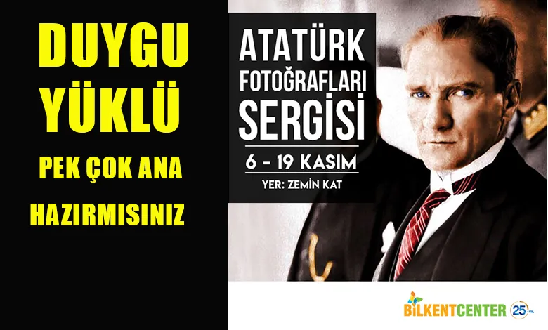 Bilkent Holding’in önde gelen şirketlerinden Tepe Emlak Yatırım yönetiminde olan Bilkent Center, 10 Kasım Atatürk’ü Anma ve Atatürk Haftası kapsamında çok özel bir sergiye ev sahipliği yapıyor. Atatürk’ün birbirinden özel fotoğraflarının yer aldığı ‘Atatürk Fotoğrafları Sergisi’ 19 Kasım’a kadar ziyaretçilerle buluşuyor. Atatürk’ün birçok anını yansıtan sergi ile geçmişe yolculuk yapan misafirler aynı zamanda ünlü ressam Sait Günel’in de canlı resim performansıyla da buluşma şansı yakalıyor. Bilkent Center, 10 – 11 Kasım’da gerçekleşecek olan eşsiz performansla buluşmak isteyenleri bu özel etkinliğe davet ediyor.