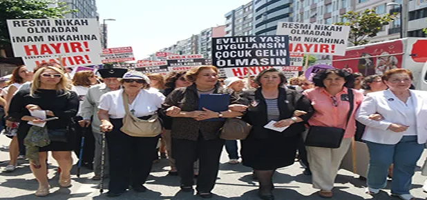 İstanbul Kadın Kuruluşları Birliği tarafından Şişli'de düzenlenen yürüyüşte binlerce vatandaş Medeni Kanun'u yok sayan söylem ve eylemlere tepkisini dile getirdi