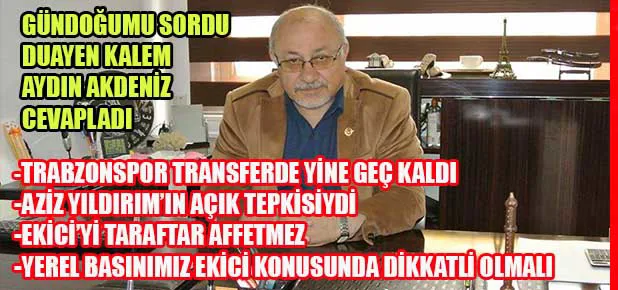 FB’ye olaylı bir şekilde transfer olan Mehmet Ekici’ye sert ifadelerle yüklenen Aydın Akdeniz, ‘Trabzonspor’la var olmuş bir ismin bu hareketini tabiki camia unutmayacaktır bakınız yönetim demiyorum camia diyorum. Ekici ne yazık ki bir profesyonel gibi davranmadı, dilim varmıyor ama daha çoğunu hak ediyor. Yerel basında sık sık beyanatlarını okuyoruz bunlar taraftarın camianın tepkisini azaltmaya dönük çabalardır, yerel basınımızda bu tür eylemlere alet olmamalıdır’ dedi.
