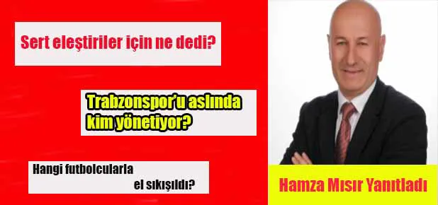 Keskin analizleri, yerinde tespitleri ile Trabzonspor’u en iyi bilen kalemlerin başında gelen eski süper lig hakemi Hamza Mısır, bordo mavili kulübe dönük yaptığı eleştirilere, ‘Bizim işimiz uyarmak, doğruları yazmak’ şeklinde yanıt verdi.