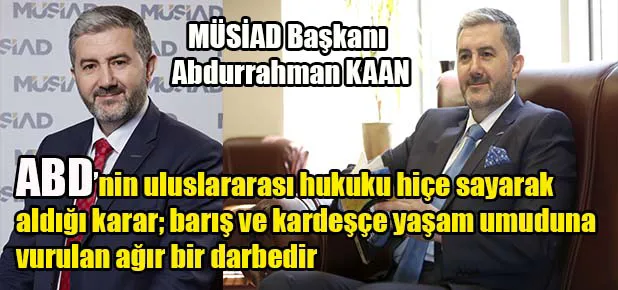 Müstakil Sanayici ve İşadamları Derneği (MÜSİAD) Genel Başkanı Abdurrahman Kaan, Birleşmiş Milletler Genel Kurulu’nda ABD yönetiminin Kudüs'ü "İsrail'in Başkenti" olarak tanıma kararına karşı yapılan oylama hakkında değerlendirmelerde bulundu.